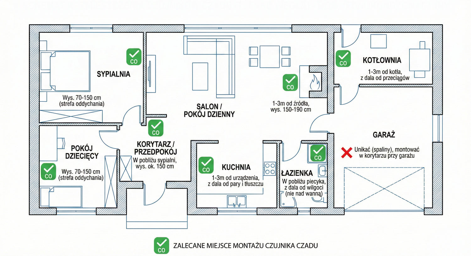 Można go bez problemu używać zarówno w mieszkaniu, jak i w domu. Montaż SensoAir zalecany jest wszędzie tam gdzie może wystąpić zatrucie czadem.